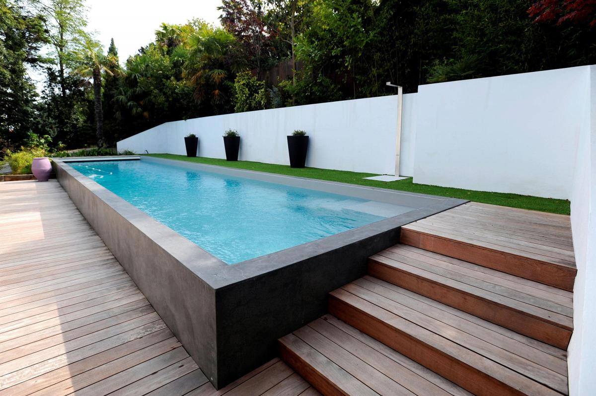 Le béton est un matériau de haute qualité et très résistant dans le temps. Une piscine réalisée en béton est récouverte d'un enduit ou d'un liner pour étanchéiser le bassin.